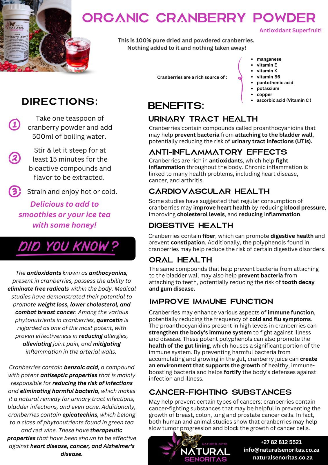 info@naturalsenoritas.co.za , we’re here to help.